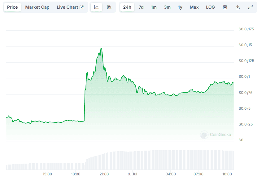 过去24小时内,模因币板块大幅反弹,Bonk Inu (BONK)和Pepe (PEPE)等众多资产实现了两位数的价格涨幅。一些不太知名的代币表现更为惊人,其中WATER Coin (WATER)就是一个明显的例子。