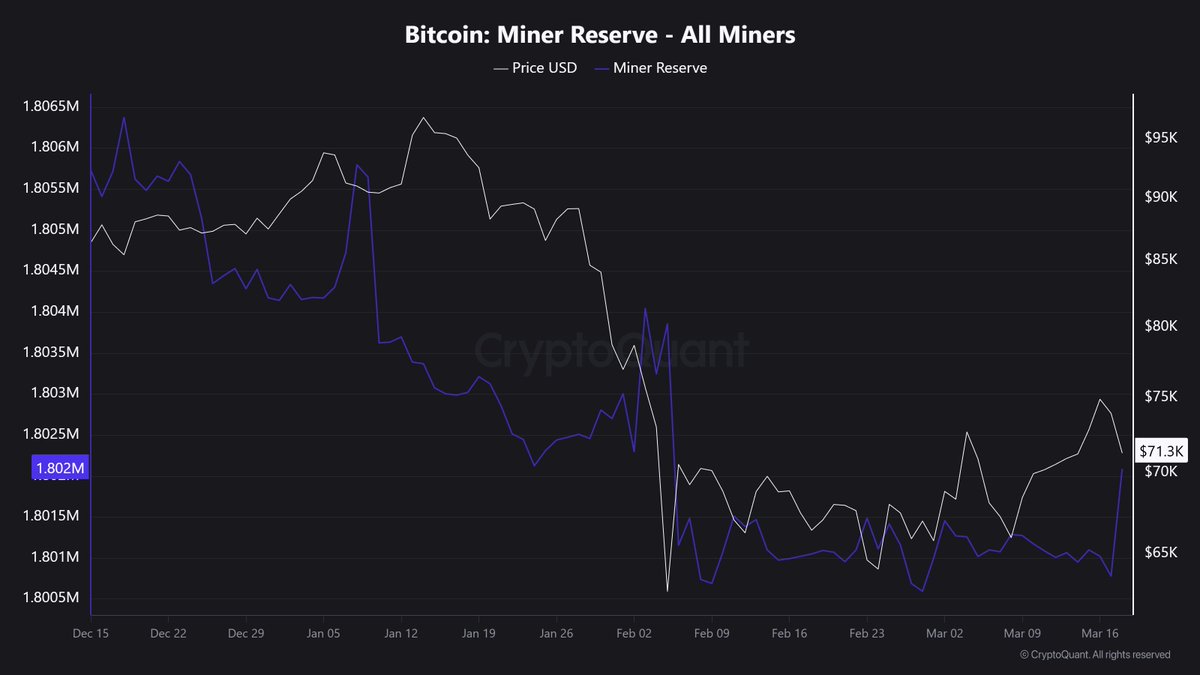 矿工的$BTC储备今天已超过180万枚,达到自2月初以来的最高水平
