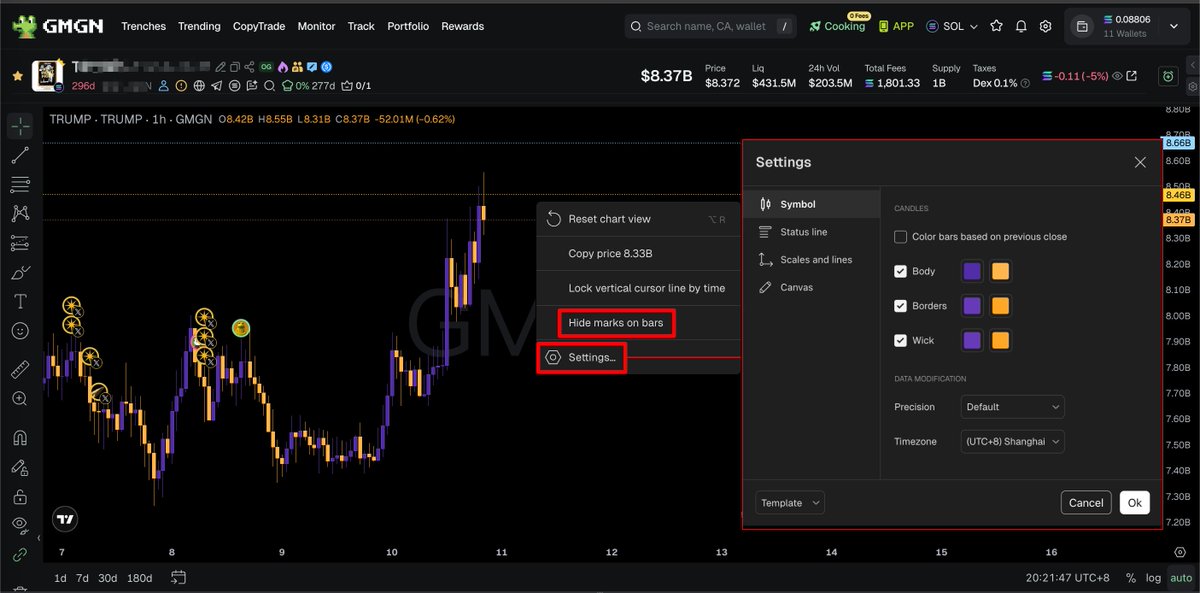 - 右键点击图表,可以快速显示/隐藏钱包标记