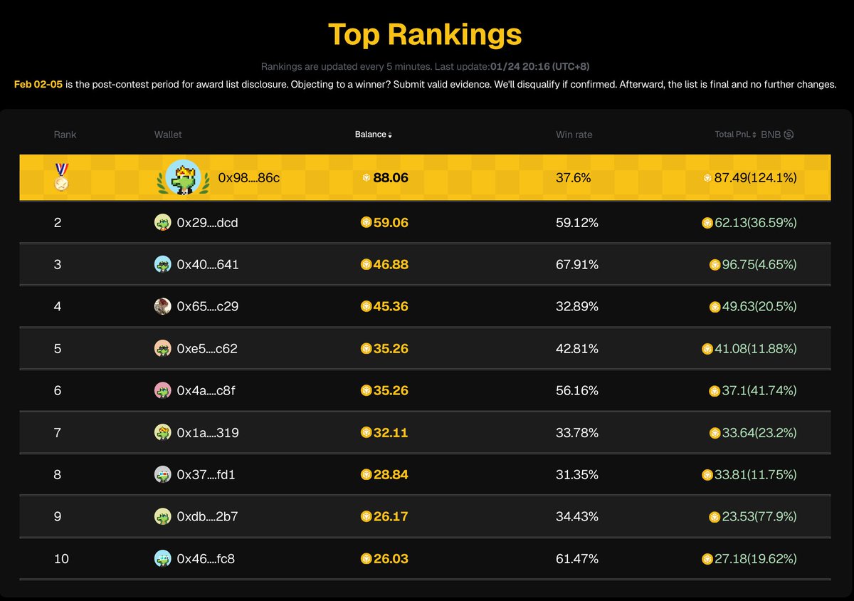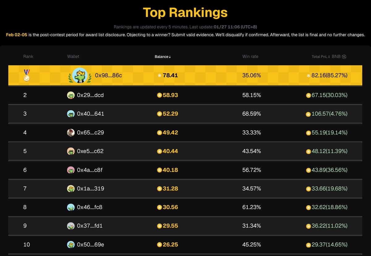 🏆 第一名: 0x98....86c 余额 80.63 BNB