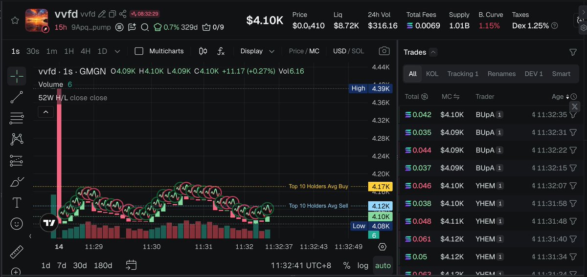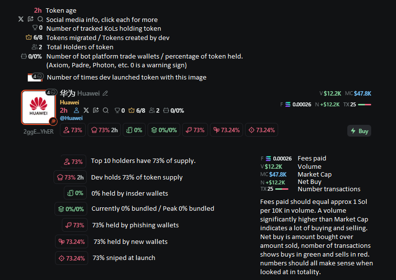 交易量、净交易量和市值在显示的时间段内都应该看起来合理。如果你在一个12K的代币上看到200K的交易量,说明它被频繁买卖;如果你看到一个新代币的交易量远低于市值,那是另一个警告。