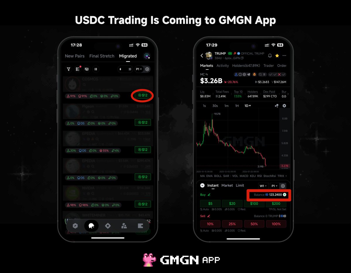 💲 USDC交易即将登陆GMGN App。