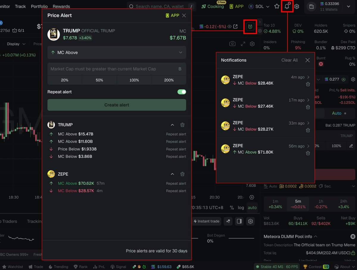 - 自定义代币价格和市值通知 - 推送至电脑和应用程序。实时监控,不会错过任何变化