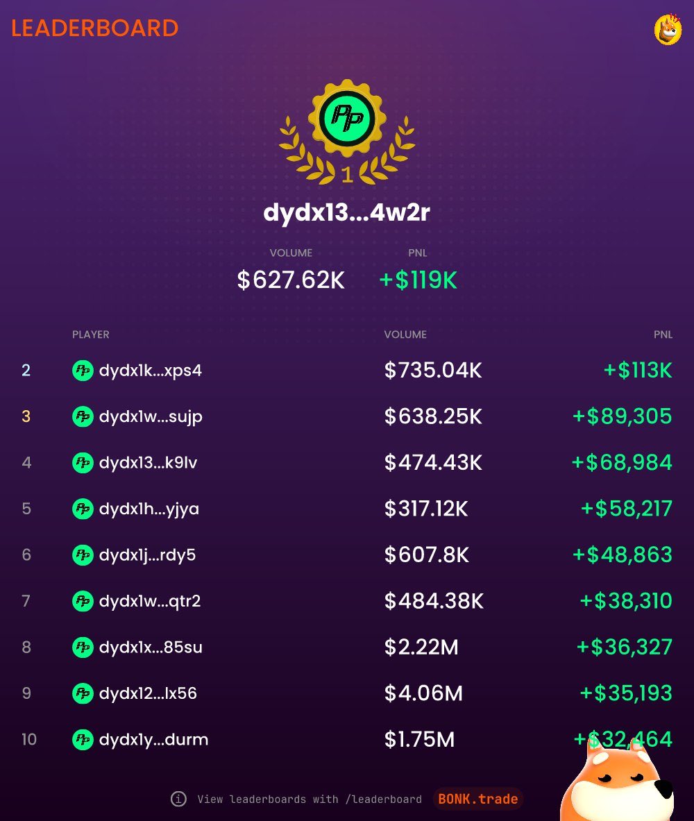 - 排行榜可以在BONKtrade的奖励标签中找到