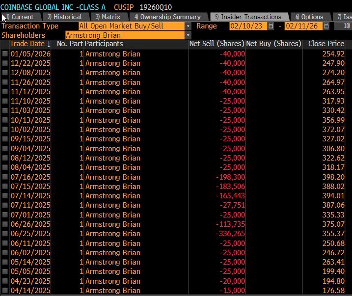 自去年四月以来,Brian Armstrong卖出的COIN股票价值($550M)不到10%的份额。