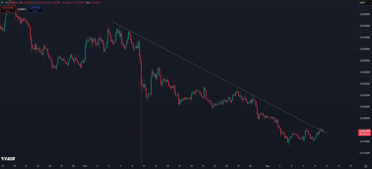 $PENGU 即将突破自10月10日抛售以来一直承压的阻力位。全力加速冲吧。