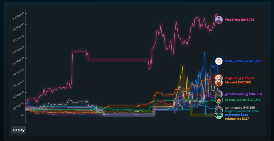 到目前为止,我对Feng在SNX交易比赛中的表现印象深刻。尽管市场波动剧烈,但他的权益曲线依然保持干净。观看其他参赛者努力追赶的过程仍然非常有趣。DegenPing和Bodhi凭借他们的重新买入在后期发起了猛烈攻势。还有八天时间,更多混乱可能发生。