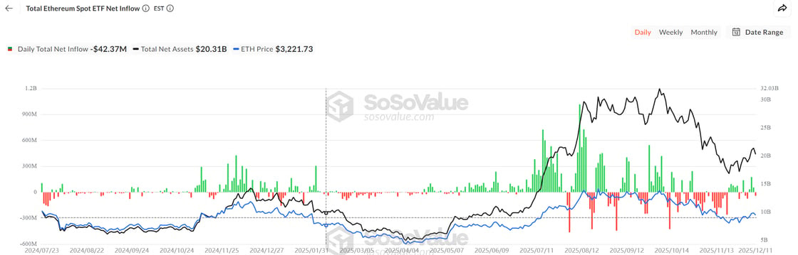 ETH +$1.03B 净流入 = 上涨后交易所流动性增加,潜在获利了结/供应过剩。