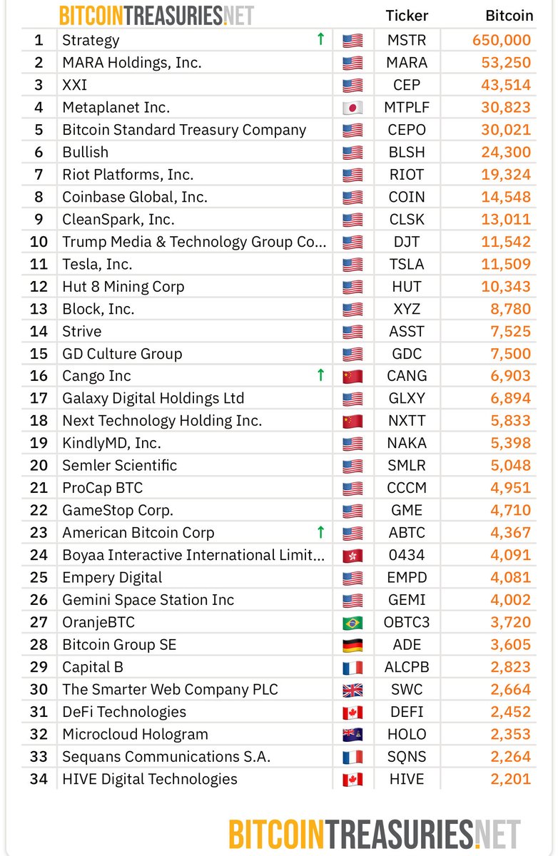 GameStop(#23):于2025年12月8日被超越,其BTC储备为4,783