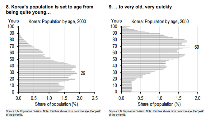 到2050年,韩国65岁以上人口将占总人口的42%。到2086年,这一比例将达到65%。这种现象在整个发达国家都在发生,韩国只是最极端的例子。