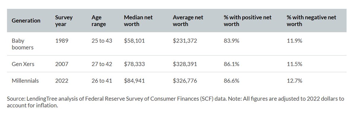 与普遍看法相反,经通胀调整后,千禧一代比婴儿潮一代在同龄时富裕得多。来源:the Federal Reserve