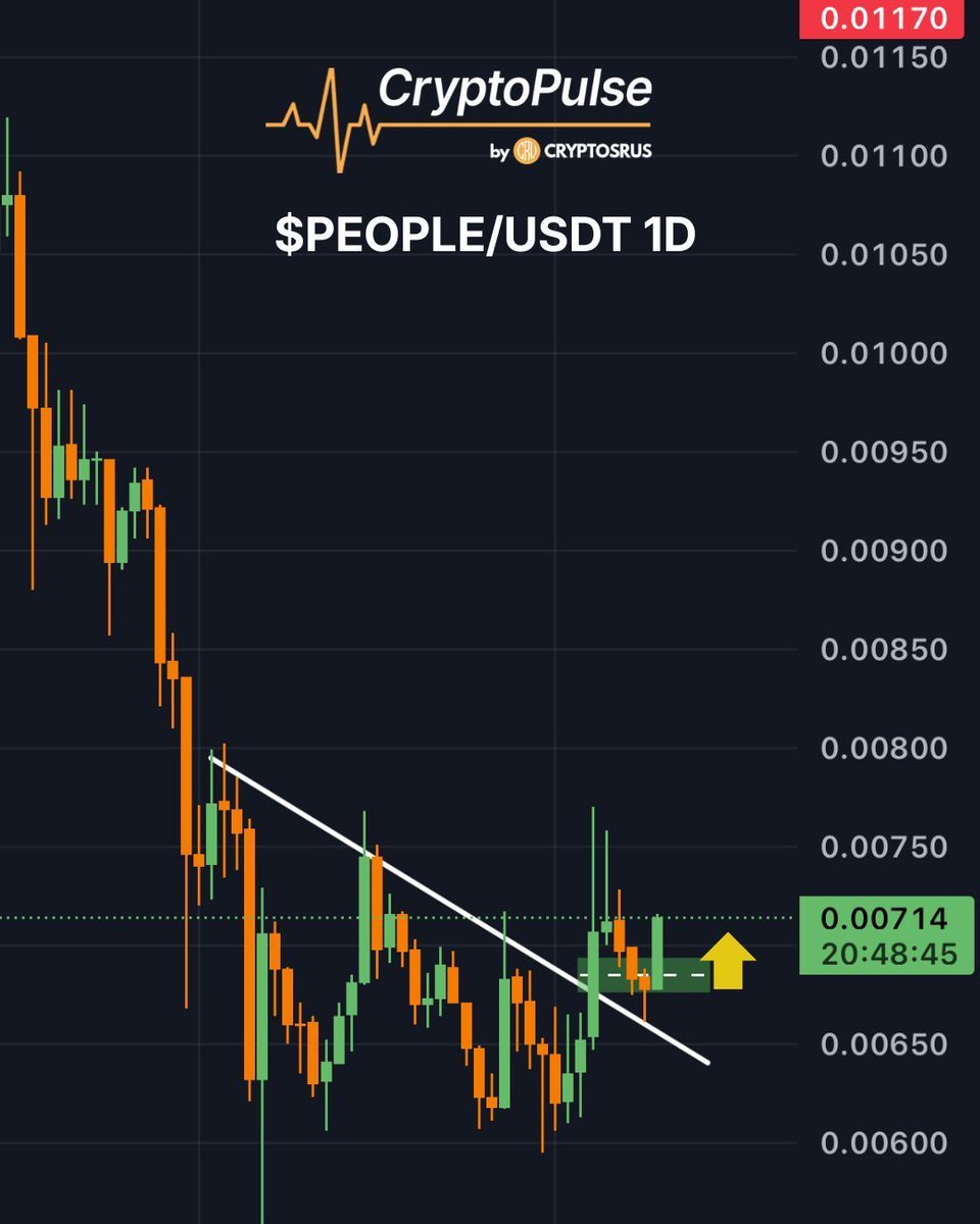 PEOPLE已经突破了其下降趋势线,目前正在重新测试$0.0068–$0.007的支撑区域。