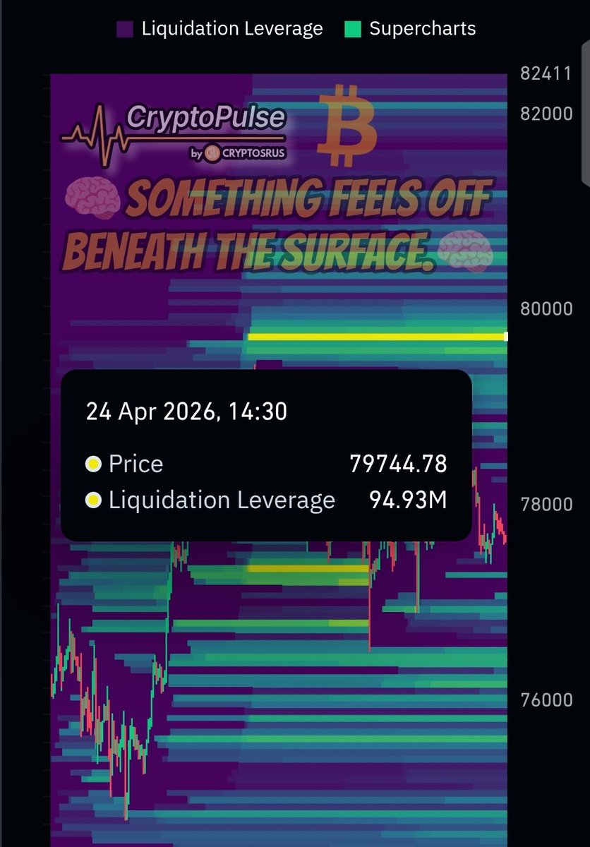 有趣的时机——钱包追踪数据显示,一条鲸鱼在77.8K美元处开设了BTC空头,清算价约为88.7K美元。这不是一个小赌注。