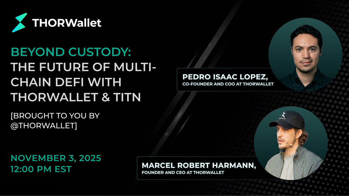 创始人兼CEO Marcel Harmann和联合创始人兼COO Pedro Lopez将解析TITN在交易所的首秀、质押者如何赚取USDC,以及为什么THORWallet的多链方法使其与众不同。