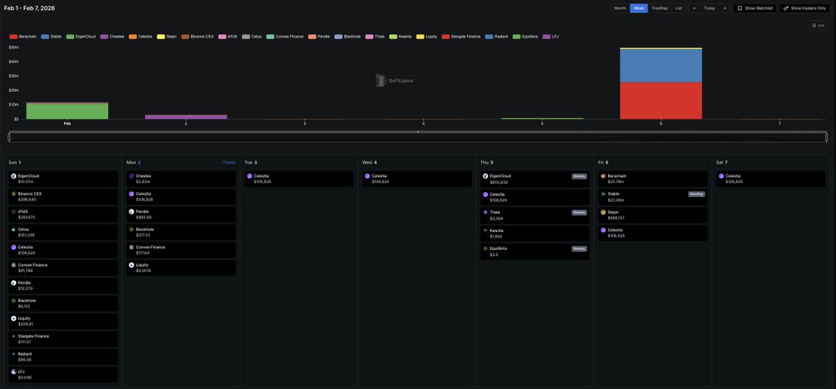 最大的一笔是BERA将于2月6日解锁2578万美元。