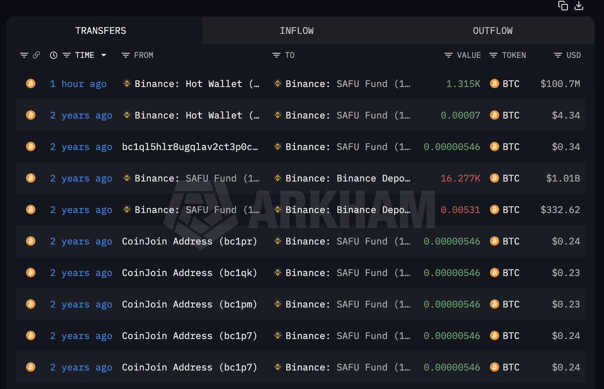 购买价值1亿美元…币安启动13万枚BTC转入SAFU计划