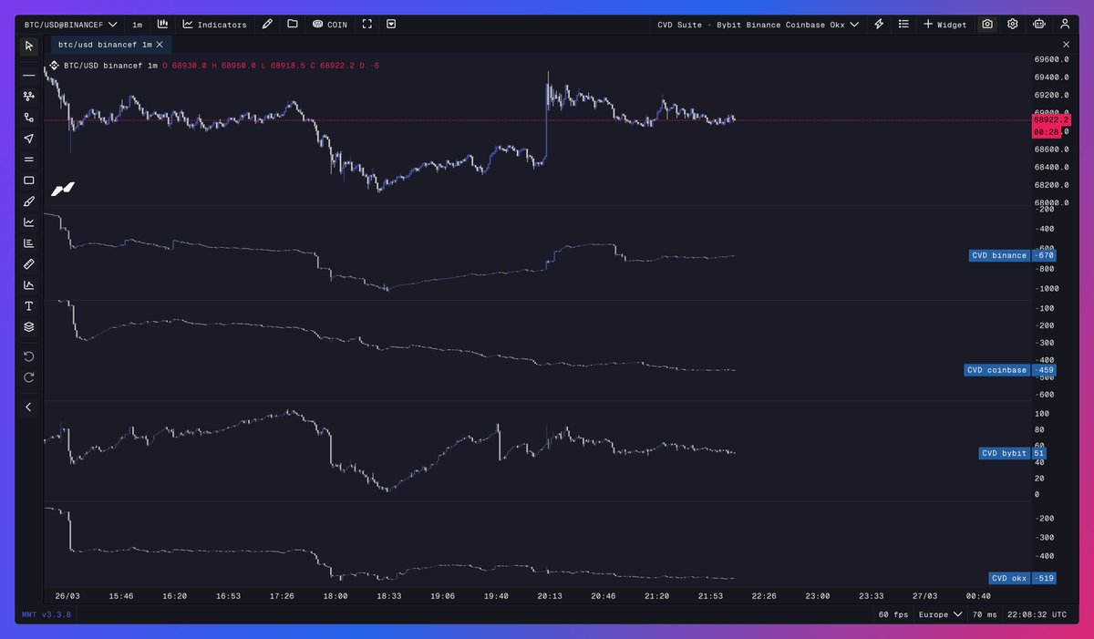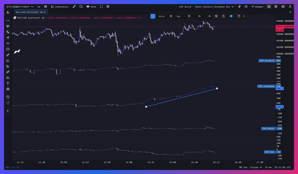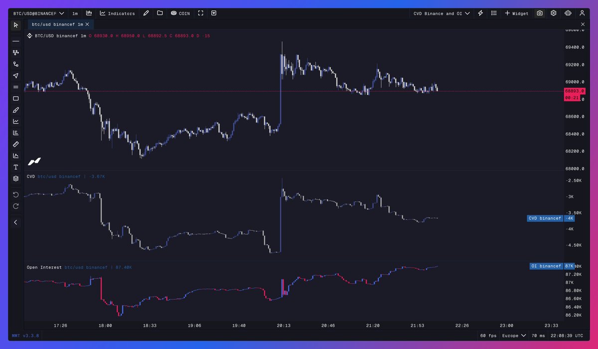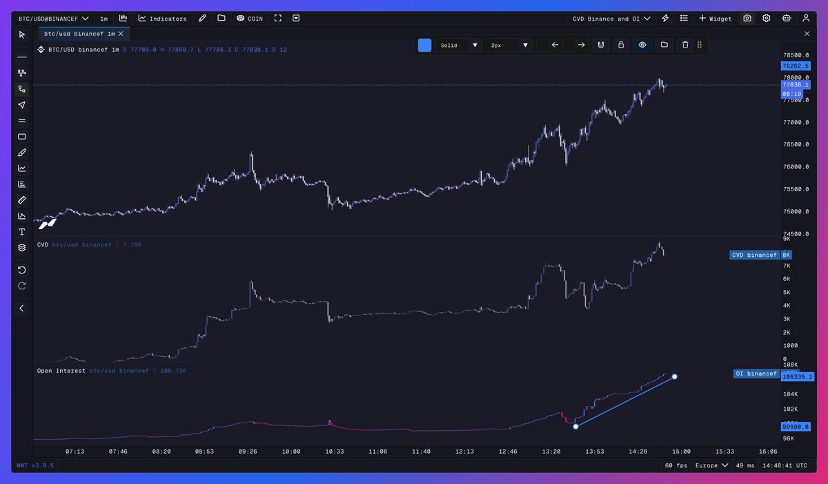 所以你在那个标题空头挤压的15分钟蜡烛上有104m的正delta。CVD几乎没有移动,但OI飙升然后下降。空头挤压但没有新的多头头寸。为了让这个推动并成为一个扫荡,你需要一些现货买单出现,否则正delta会呕吐。