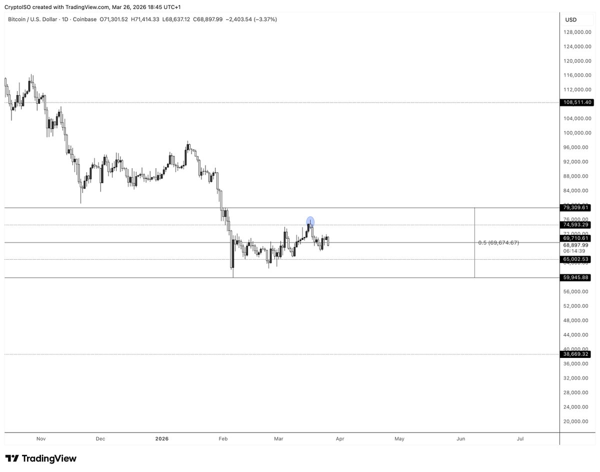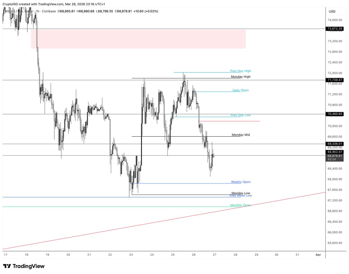 填补并从69ks撤退似乎是一条合理的路径。 昨天发现了下方的低效,但我们从未触及顶部单点。