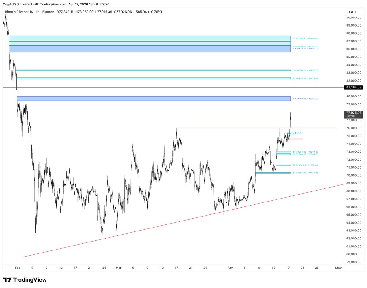 对于$BTC来说,低效之处显而易见。或许日线趋势会转为看涨,耗尽后又会像之前从80k到97k那样转回看跌。目前只是猜测,但你可以看到两侧的流动性所在。