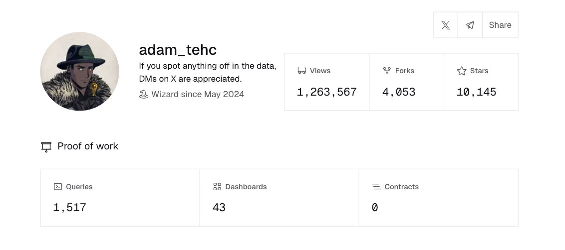 数据面板达人 | dune.com/adam_tehc | 我的量化分析师 @trenchstatsAI