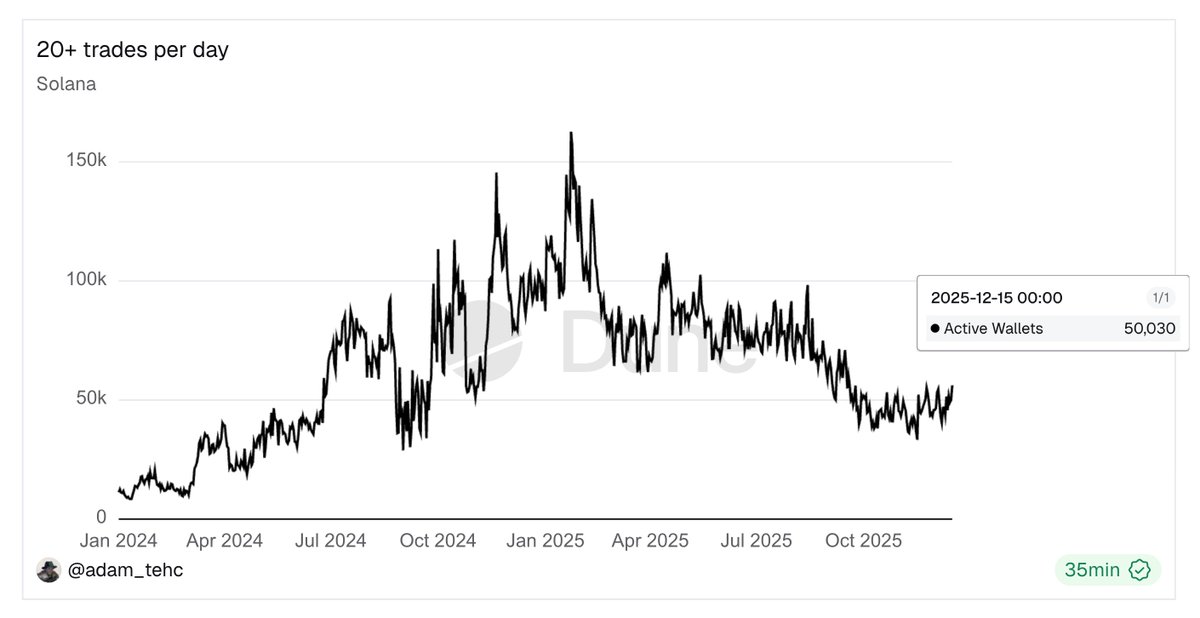 50,000个钱包每天在Solana DEXs上进行20+次交易
