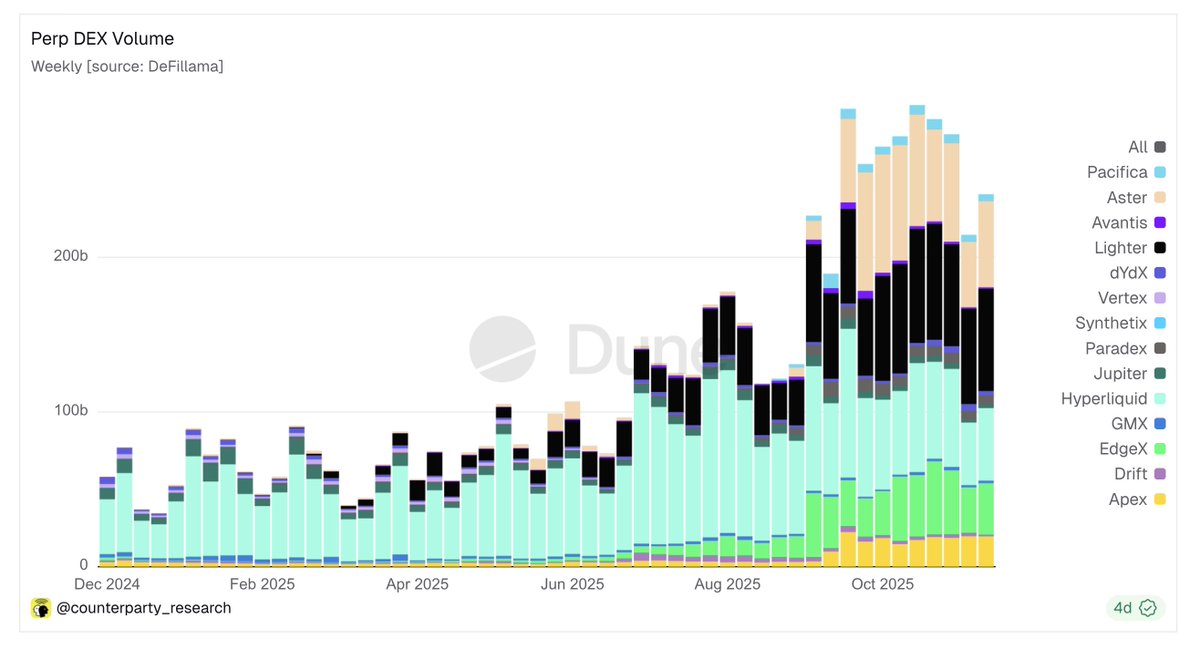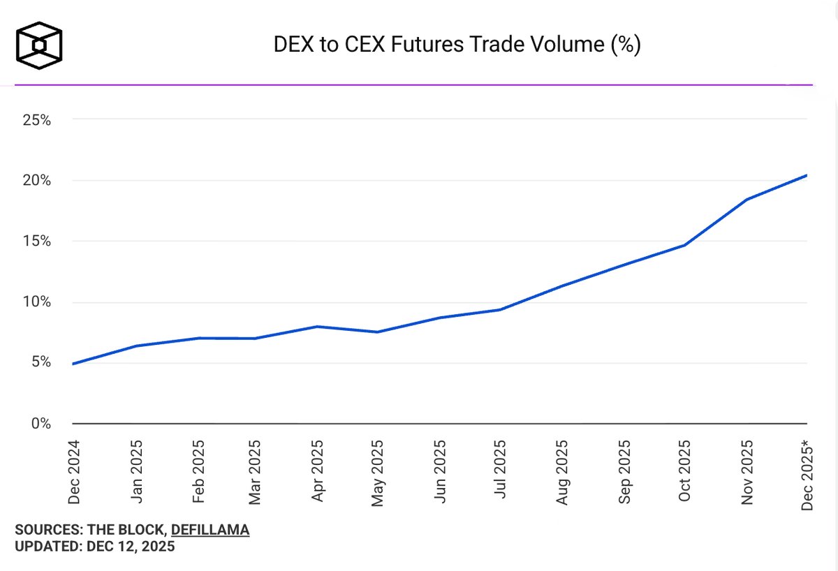 - 本月至今,DEX与CEX的perp交易量占比为20%。