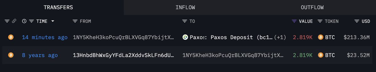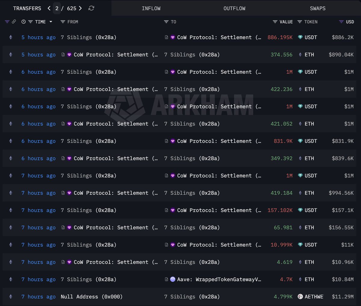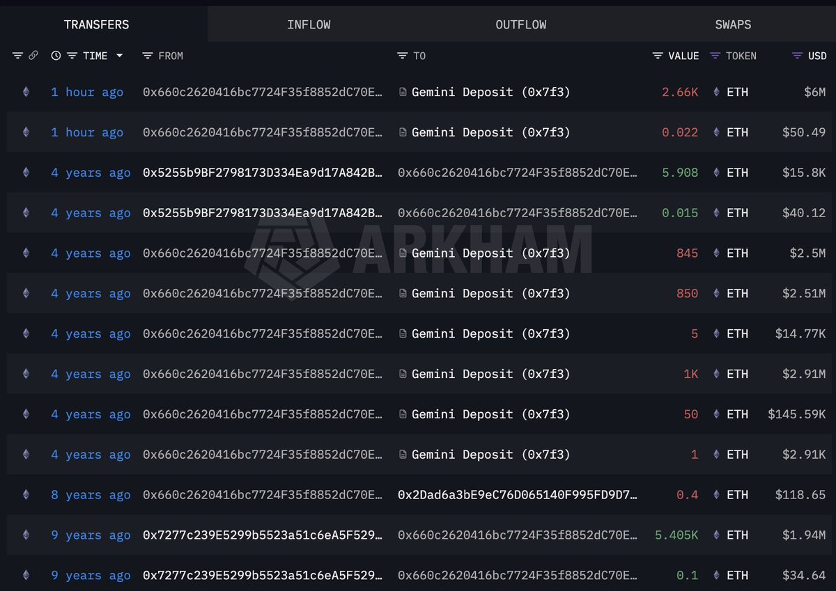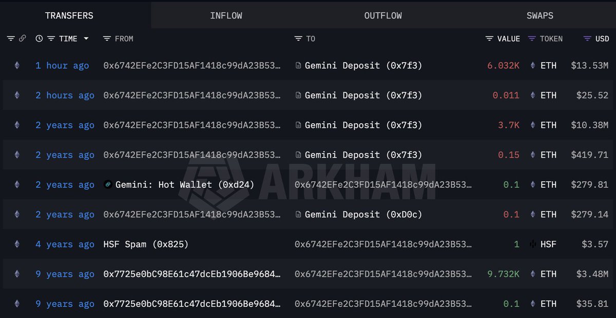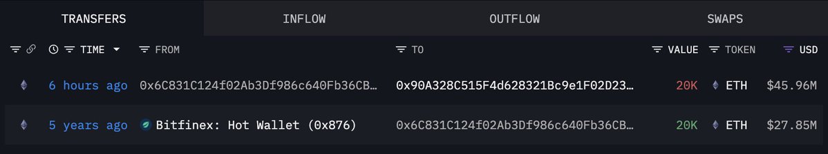 一位#EthereumOG在市场崩盘期间醒来,卖掉了两个钱包(0x660c和0x6742)中剩余的8,691 $ETH($20.1M)。