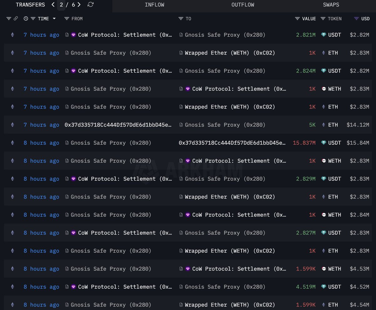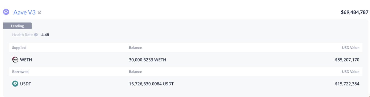 Whale 0xa339长期通过循环借贷策略持有$ETH,在过去两天内以2,869美元的价格卖出20,599 $ETH(5910万美元)以偿还贷款。他仍在#Aave上持有30,000 $ETH(8520万美元),未偿还债务为1570万美元USDT。