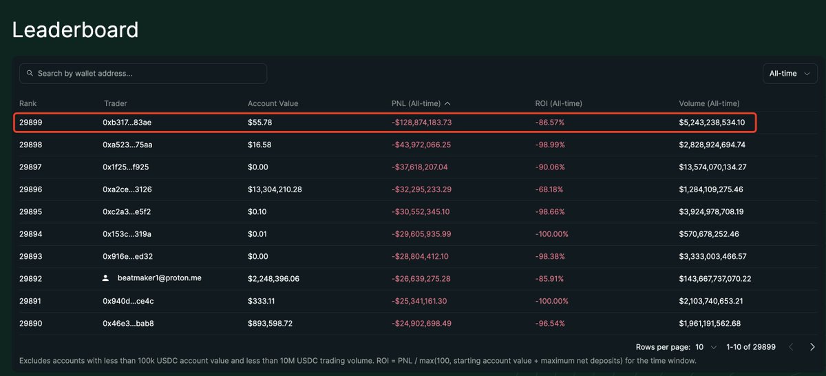 曾经,这位#BitcoinOG(1011short)以超过$142M的利润登顶排行榜。现在他依然排名第一——只不过是在亏损排行榜上,总亏损达$128.87M。