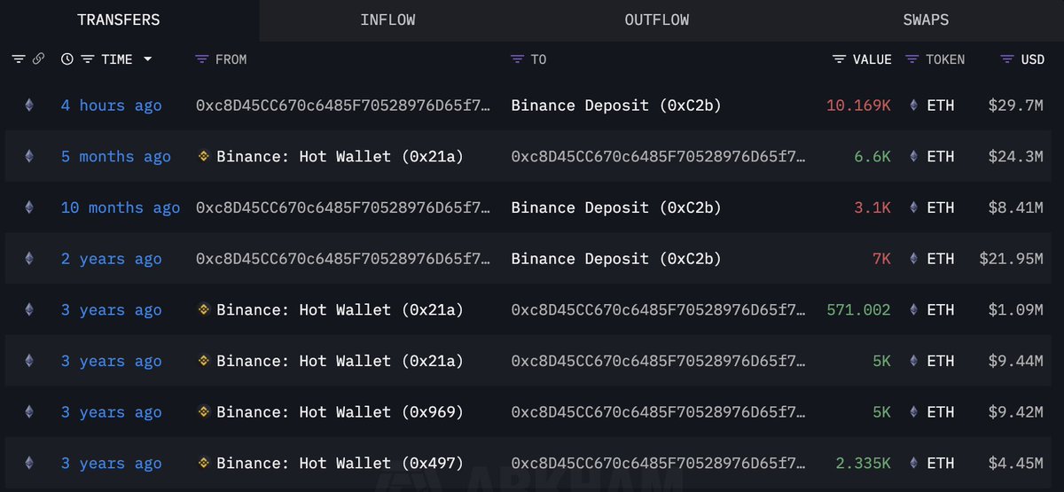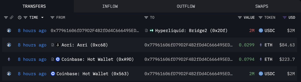 Arthur Hayes(@CryptoHayes) 在过去两天内从 Binance, Galaxy Digital, Wintermute 和其他几个平台收到了 32.42M $USDC。