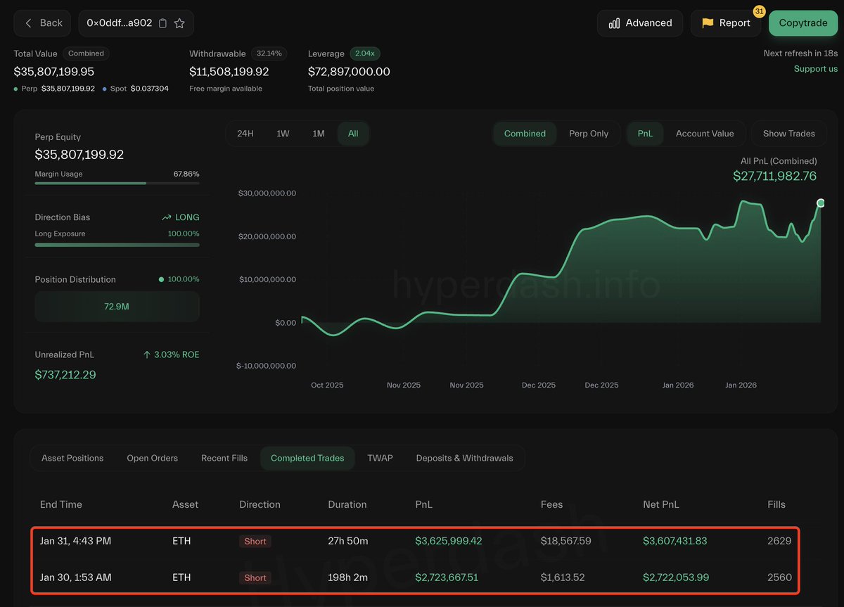 James Fickel(@jamesfickel)此前在做多ETH/BTC时损失了约25K $ETH($83.6M),2小时前又向#CoinbasePrime存入了4,400 $ETH($18.28M)。