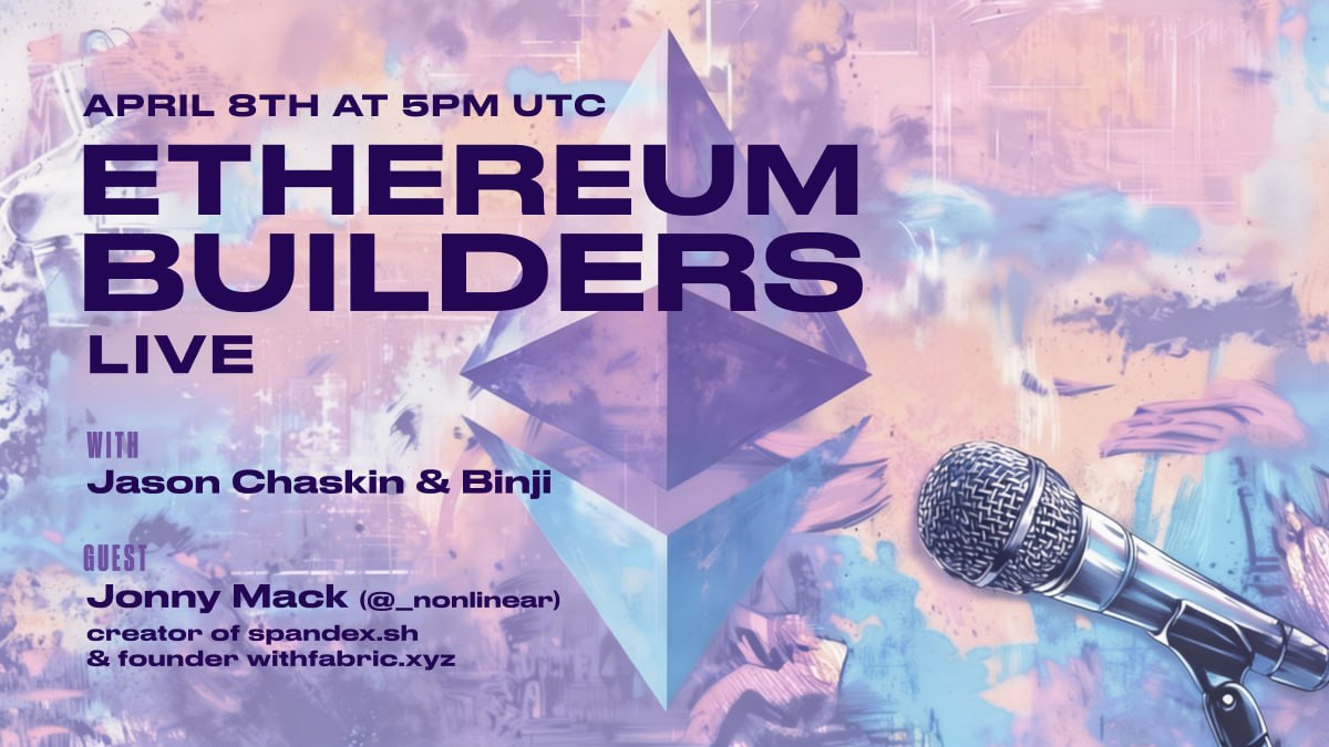 加入@jchaskin22和@binji_x的Ethereum Builders Live,与@3janexyz的@_yakovsky一起。