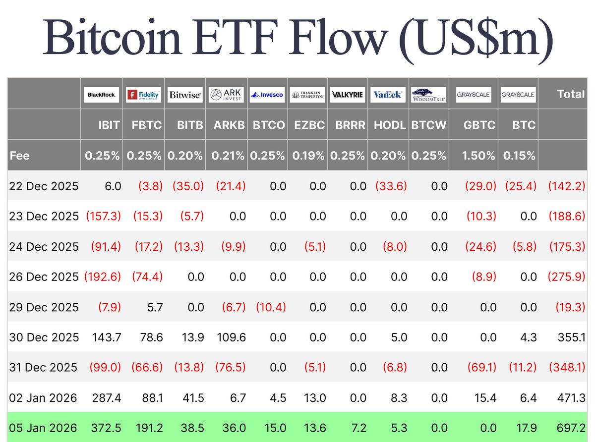 $1.1 billion in Bitcoin ETF inflows in the first 2 trading days of the year