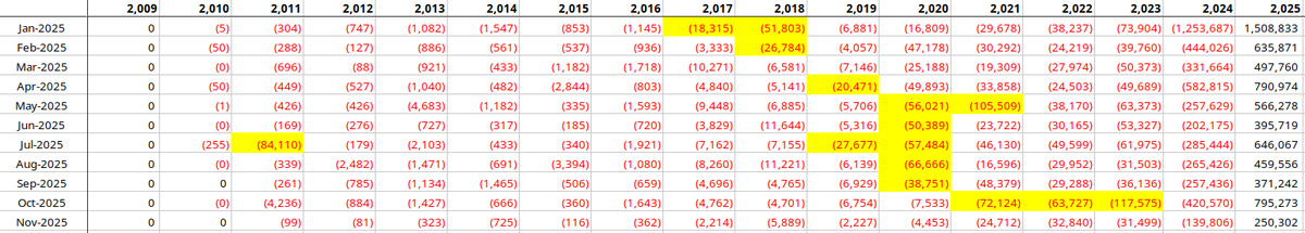 * 例外?2018年或2022年中期熊市洗盘,但我们离那些狂热的峰值还很远;新投资者群体(ETF成本基础89K美元,鲸鱼涌入)正在捍卫94K-96K美元,就像它是Fort Knox一样。