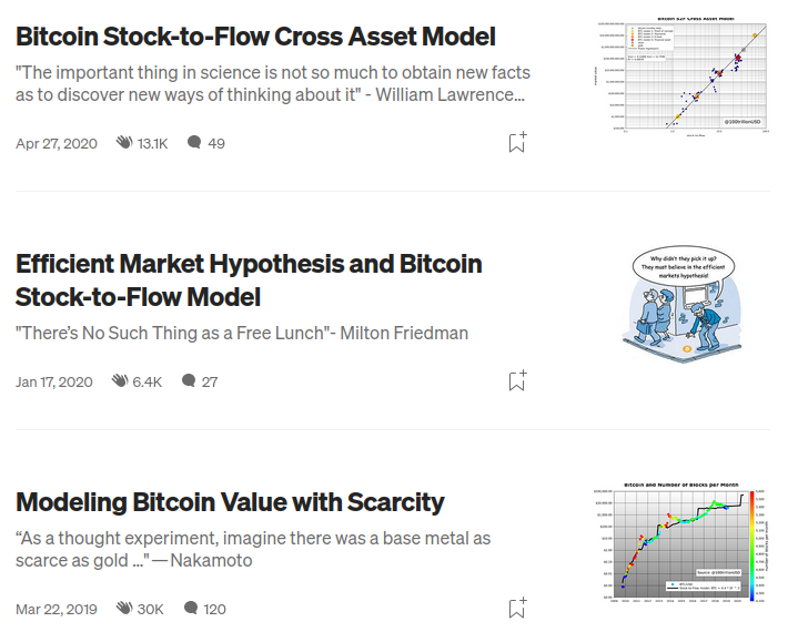 2. "有效市场假说与比特币存量-流量模型"(2020年1月17日)。这篇文章直接回应了原始模型最常见的批评:如果S2F数据是公开且可预测的,为什么市场没有根据EMH将其定价?