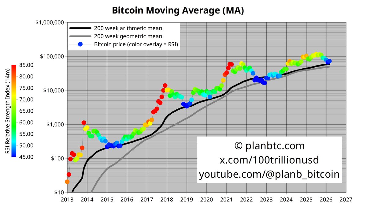 比特币保持在7万美元以上...但200周均线潜伏在约6万美元(算术)和约5万美元(几何)下方。每一次大熊市都见证了BTC跌破这些均线。历史在重演...还是这一次真的不同?🔥📉实时图表 + 数据: