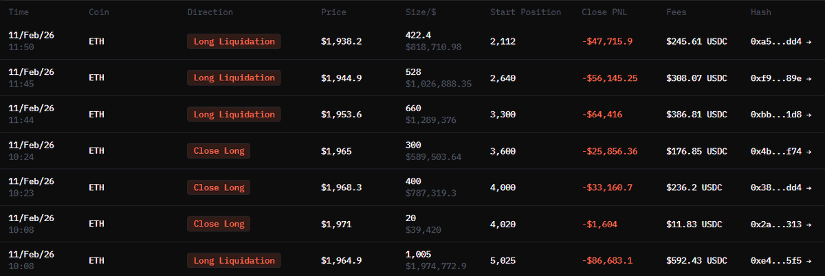 随着市场下跌,Machi (@machibigbrother) 的 $ETH (25x) 多头头寸再次面临部分清算。