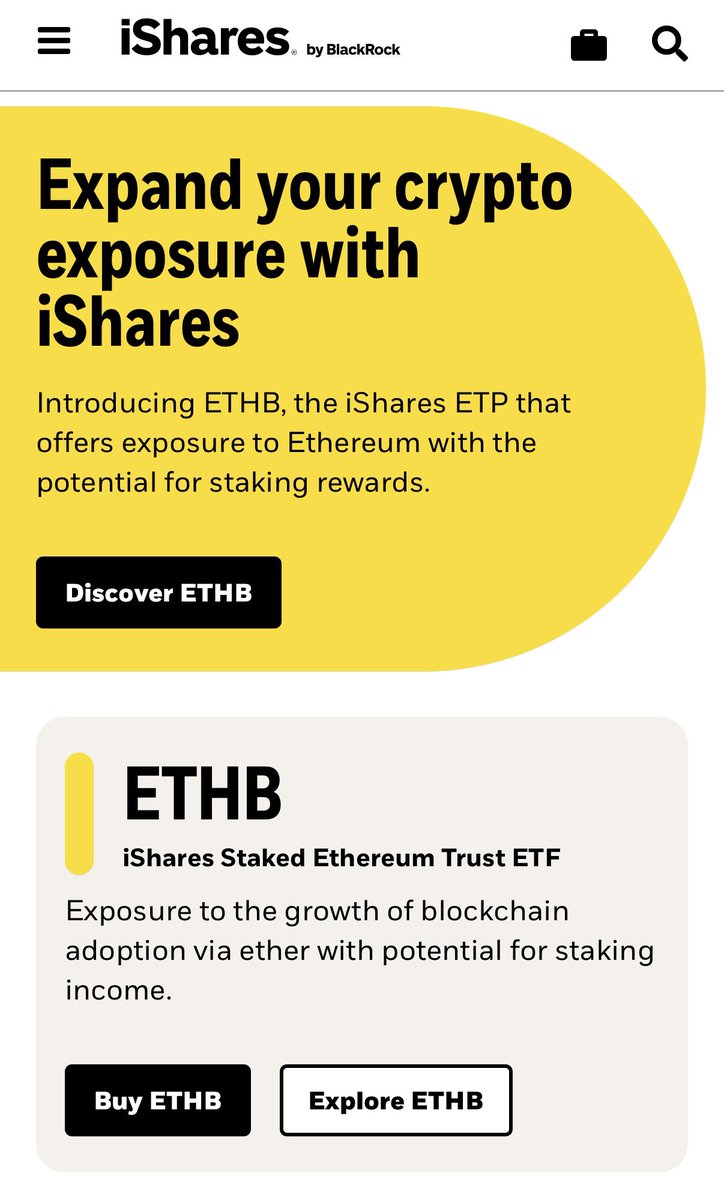 当你访问*全球最大*的ETF发行商首页时,首先映入眼帘的是……以太坊。iShares提供近500只美国上市的ETF,覆盖几乎所有资产类别。而他们现在正以以太坊领先。引人深思。