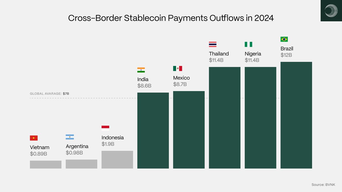 新兴市场正在引领向数字美元的转变。稳定币的全球性使得整个经济体能够绕过传统金融轨道,使资金流动的主要通道更便宜、更高效。