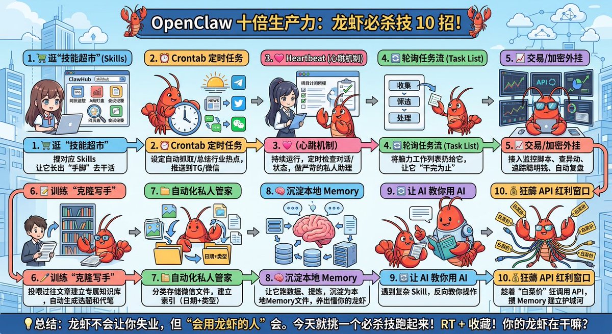 👇觉得有用,欢迎 RT + 收藏!你的龙虾现在在帮你干嘛?评论区分享🙌