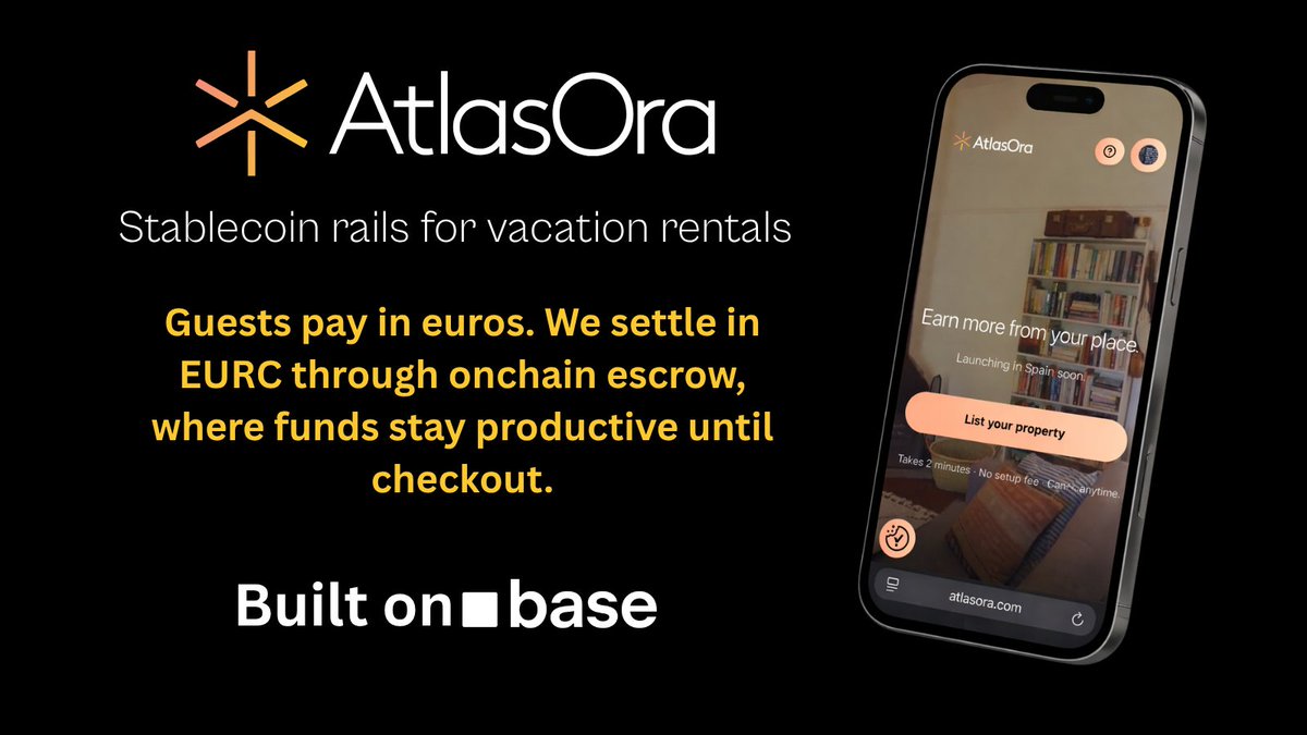 认识AtlasOra:一个由稳定币驱动的度假租赁预订平台,建立在@Base上。