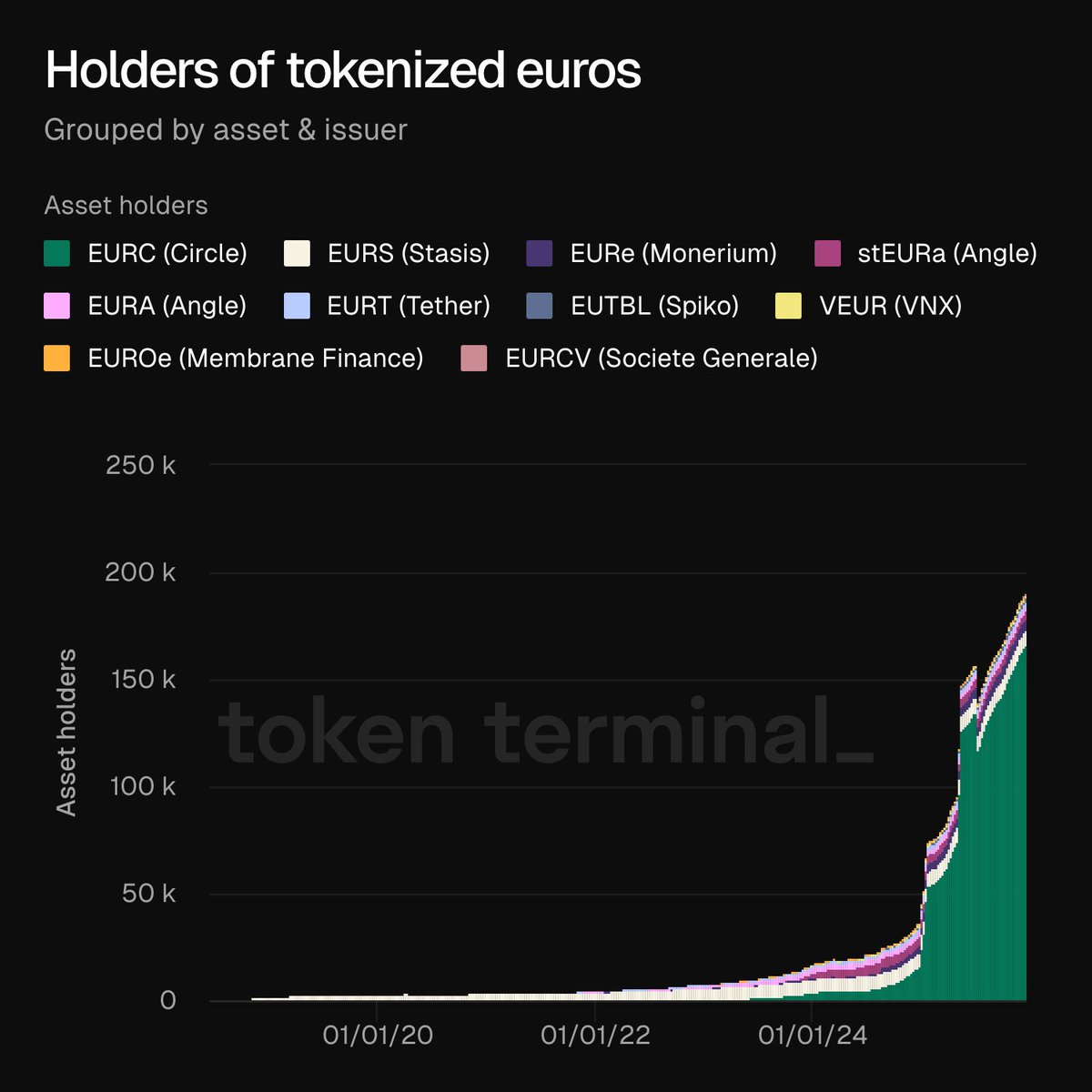 🇪🇺⛓️ @circle,一家美国的发行商,继续在采用链上欧元方面处于领先地位。有趣。