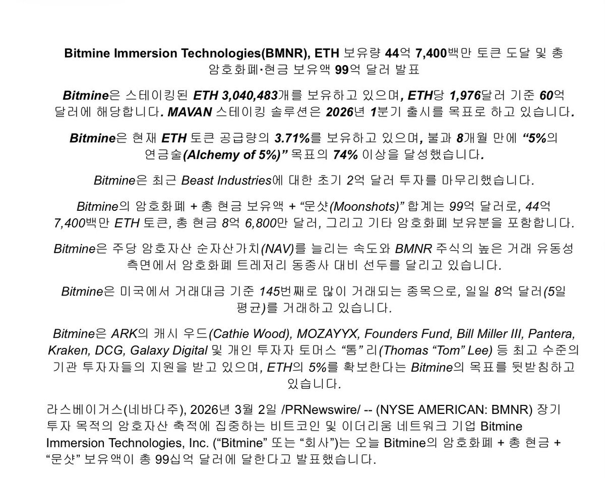 BitMine最新韩语新闻稿 🇰🇷👇