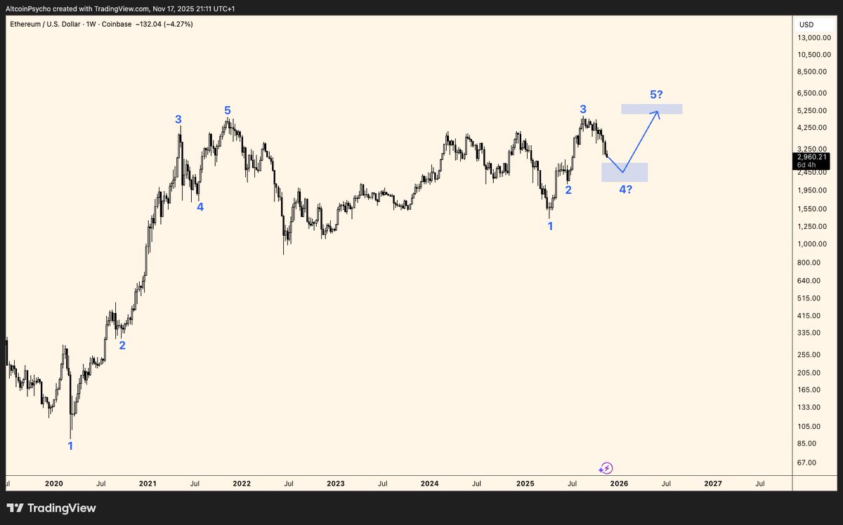目前的跌幅仅为高点的32%,所以如果我们重复2025年的情况,ETH可能会达到$2600
