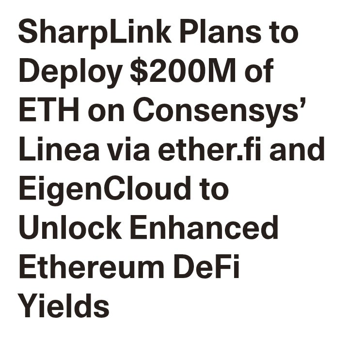 📢@sharplink 正在Linea上部署他们的2亿美元ETH资金库。全球最大的公共ETH持有者之一选择了Linea的机构级基础设施,以解锁可扩展且安全的链上收益。这正是以太坊L2的构建目的。