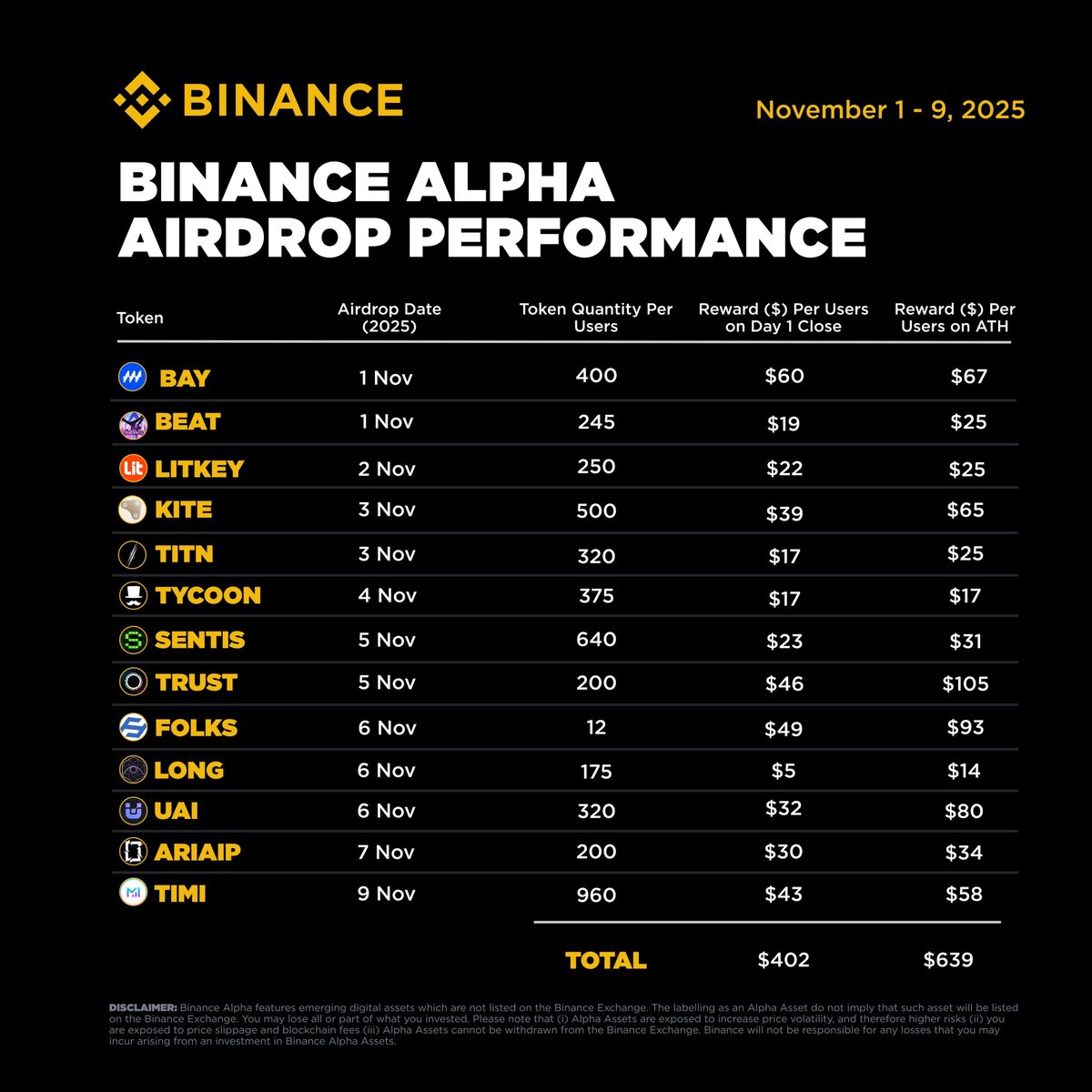 看看下面的表格,了解我们的独家Binance Alpha空投在11月的表现!