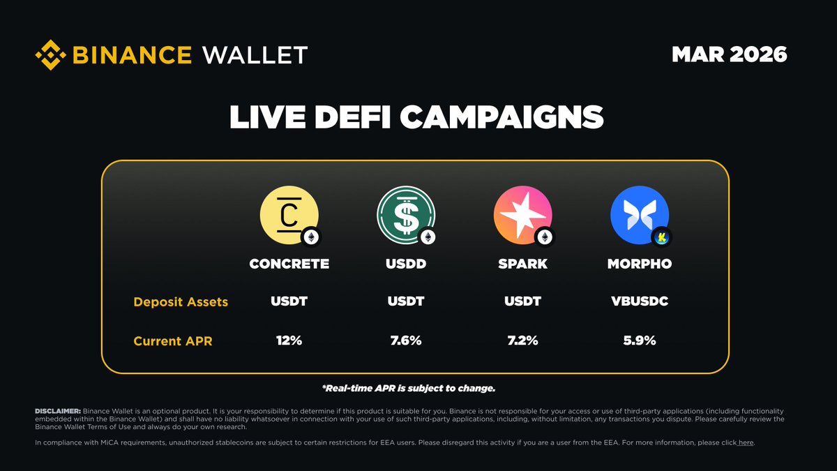 探索@ConcreteXYZ @usddio @sparkdotfi @katana @Morpho提供的实时收益机会,立即存款即可获得额外奖励。