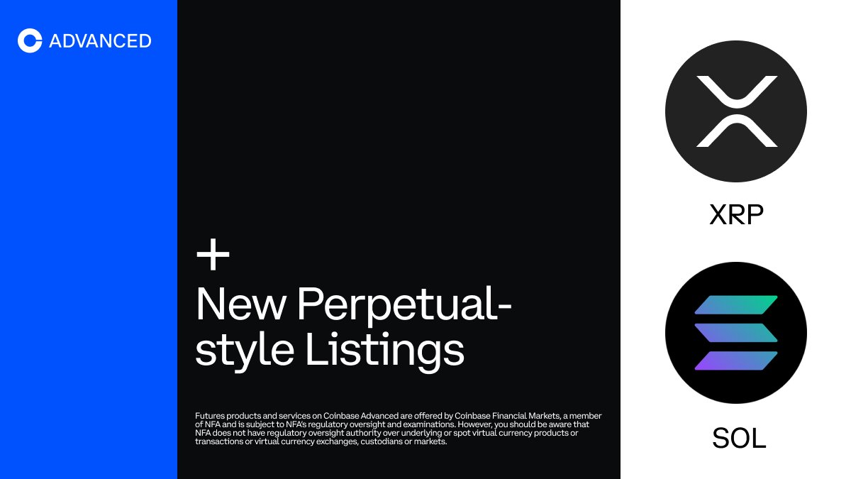 现在你可以在Coinbase Financial Markets上交易SOL和XRP的永续期货了。无需担心月度到期,还能在安全受监管的环境中使用高达5倍的杠杆。