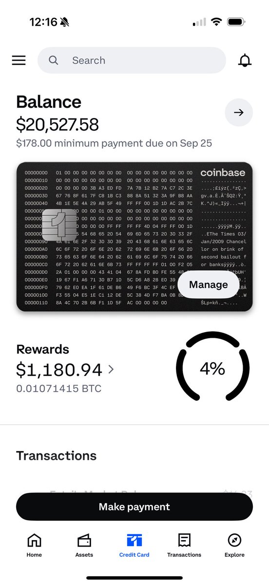通过使用coinbase one卡进行日常消费,我已经赚取了超过$1K的比特币。每次支付时都能积累btc,这种感觉太神奇了——无需做任何额外的事情。