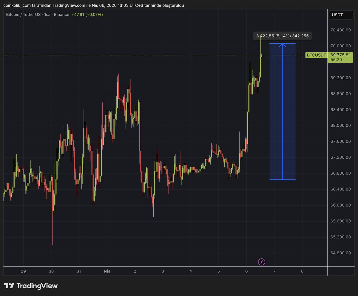 随着停火谈判的影响,#Bitcoin 突破了7万美元的水平。随着市场上涨加速,看跌预期落空。